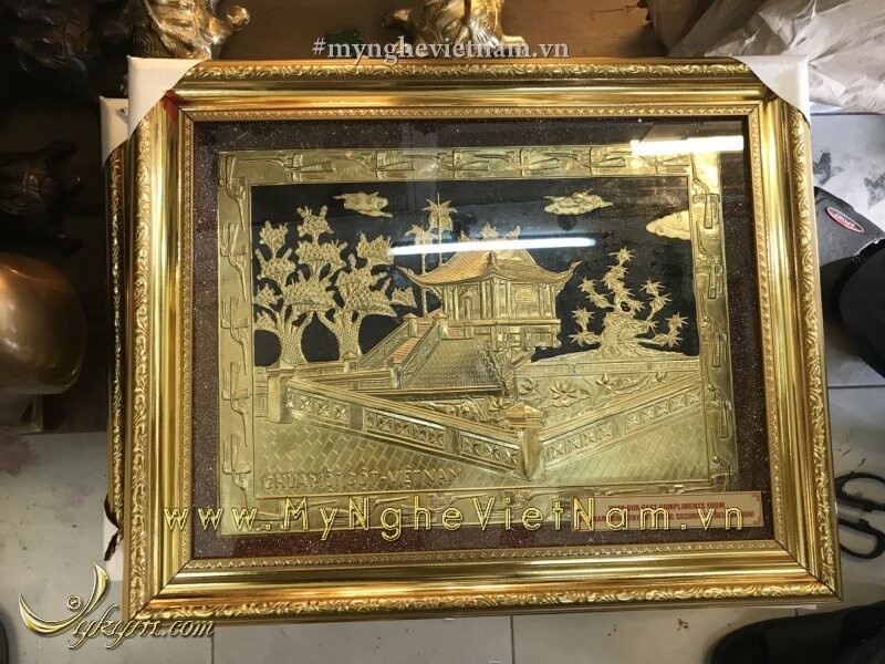 Tranh chùa 1 cột bằng đồng 40x50cm.