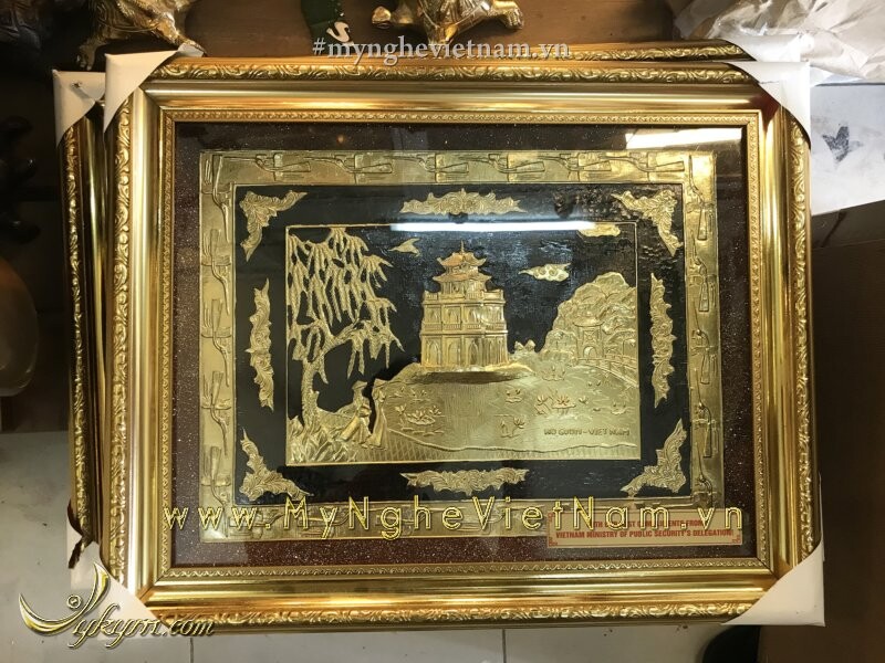 Tranh tháp rùa hồ gươm bằng đồng 40x50cm.